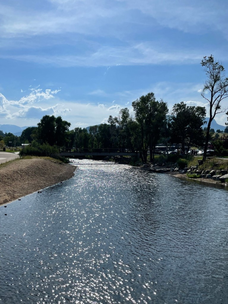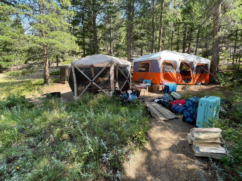 Such a beautiful sight after such a long road trip. We knew that after crossing Pennsylvania, West Virginia, Ohio, Indiana, Illinois, Missouri, Kansas, and the plains of eastern Colorado, that we were closing in on our destination! This picture doesn’t do it justice. When you’re driving and all of us sudden there’s this view…Home sweet home Estes Park! Our campground was just about a stone’s throw from one of the entrances to RMNP. And RMNP is one of my favorite places in the whole wide world. 😊 So I was a happy camper. Literally. Lol. Where each and every drive would put us in awe. 🥰After making (many) multiple trips between the car and the campsite, we were finally getting set up and settled in. The canopy was set up for “indoor” dining and games, and the tent was set up for a good night’s sleep. There was a lot to unpack yet, though. Hailey and Anjali’s bed is to the right. Steve and I had the bed to the left, and we had the inflatable sleeper sofa in the middle. We kept it folded up into a sofa. But most of the time it served as a great place to organize all our gear. Lol. (Nice legs, Anjali.) 😉 😜Behind our campsite there was nothing but wilderness for hundreds of miles. Perfect. 😊Our fire pit/grill and our bear box/pantry. 🙂 Absolutely everything edible had to be kept in the bear box. We saw deer, elk, moose, squirrels, chipmunks, hummingbirds…oh my. But we never saw a bear. Maybe next time. 😉View from the campground.Truly, Estes Park is an exquisite place.Walking downtown Estes Park. The Big Thompson River. Deer wandering around our campground. 😊