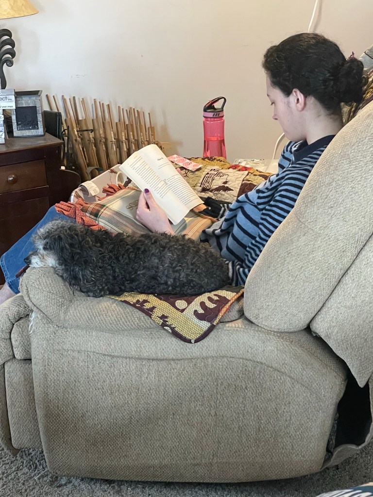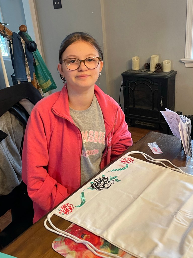 Leia enjoys reading hour for other purposes. 🙂‘Onward Christian Soldiers’ with Miss Sierra Snyder at the organ. 😊Monday math.Monday math.The kids had fun making candy jars today. (Or should I say decorating them using various colors and textures of removable vinyl paper and permanent markers.) You’ll have to tap or click on each image to get the full picture. Now they are excited to go to the store to pick out the candy to go into the jars. 🙂When it’s time for quiet reading, and the animals enjoy it as much as the humans. Lol. Anjali and Curly.Sierra, Leia, and Cow the cat. For our final art project of the year some of the kids decided to design their own sack pack while others chose to design their own tote bag. They used stencils, fabric markers, puffy paint, etc. The results were great!
